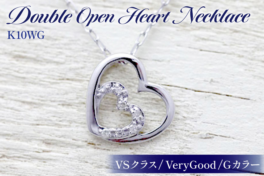 K10WG ダブルハートペンダント (K10WG ネックレス付)1点