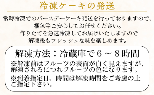 苺屋では、常時冷凍でのバースデーケーキ発送を行っておりますので、梱包等ご安心してお任せください。