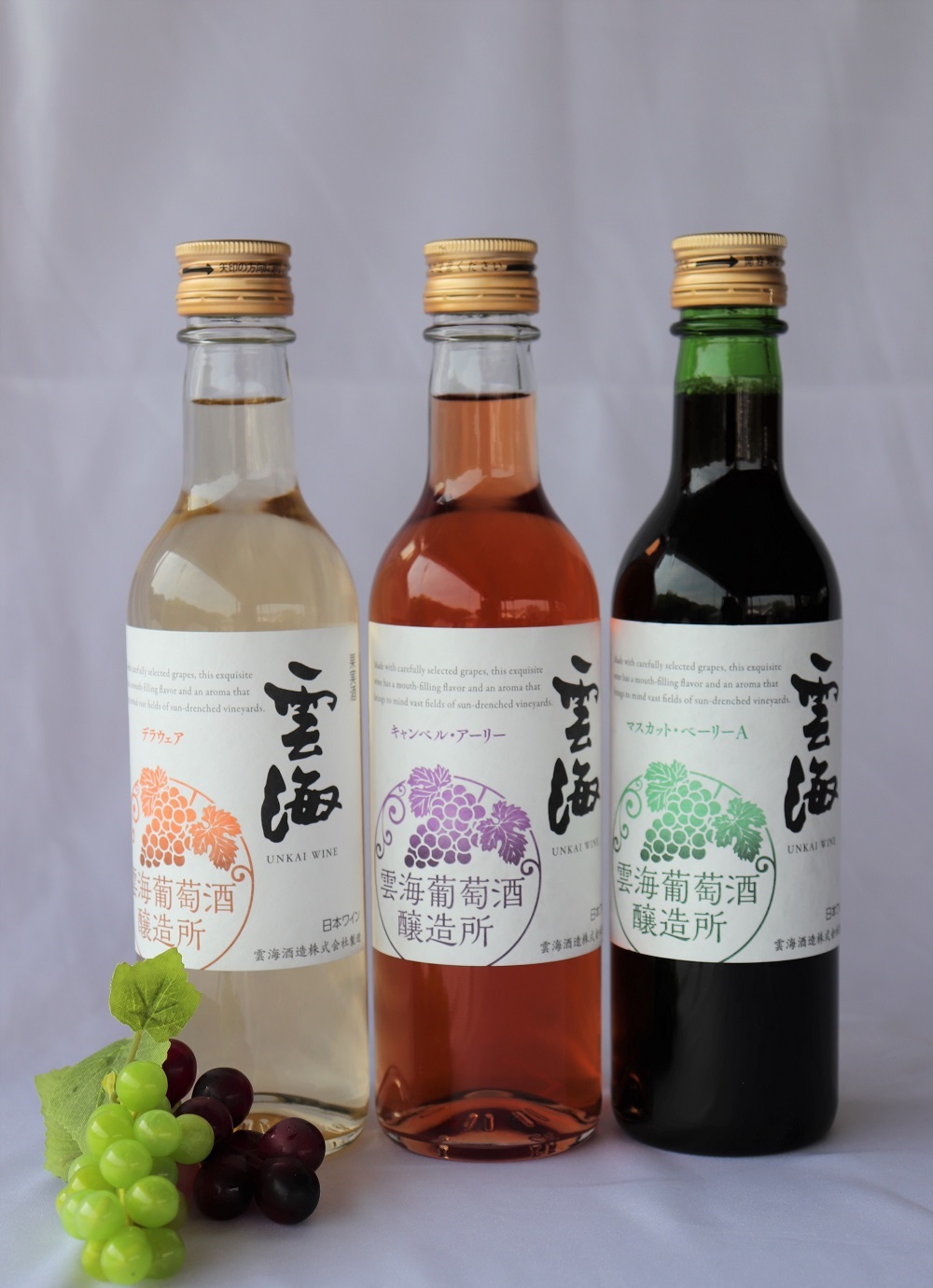 マスカット・ベリーA:爽やかな香りとすっきりとした飲み口のやさしい赤ワインです。鮮やかなルビー色の輝きも人気のひとつです。
