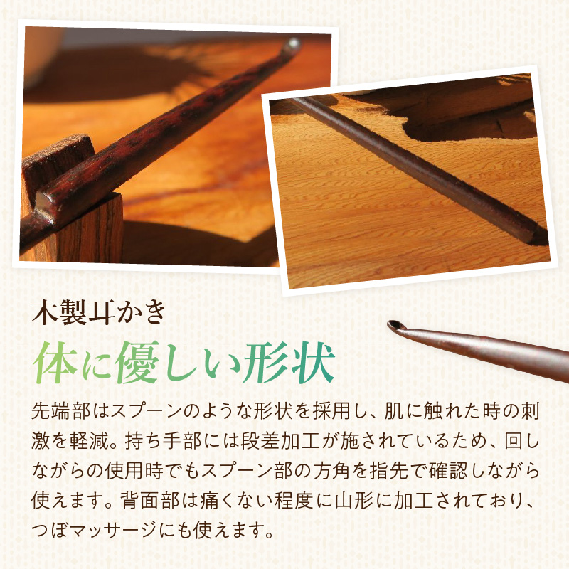 株式会社佐橋(ART工房Nob)の木製耳かきは、体に優しい形状で設計しています。