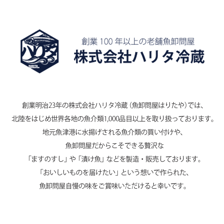 創業明治23年の株式会社ハリタ冷蔵(魚卸問屋はりたや)では、北陸をはじめ世界各地の魚介類1,000品目以上を取り扱っております。