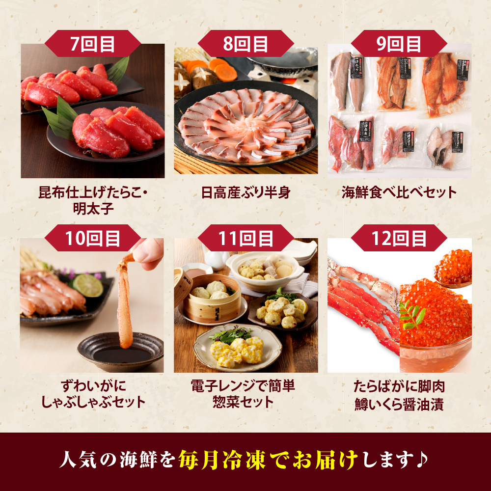 えりも町から、人気の海鮮を毎月お届けします。