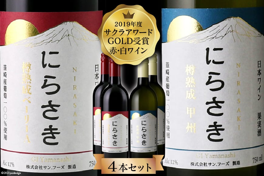 ![『にらさきワイン』樽熟成 赤白4本セット / サン.フーズ / 山梨県 韮崎市 [20743345] ワイン 赤 白 ワインセット 赤白](https://www.furusato.aeon.co.jp/g_img/192074/file_ec7c22038c2987ef746f1b77b0bc4351.webp)