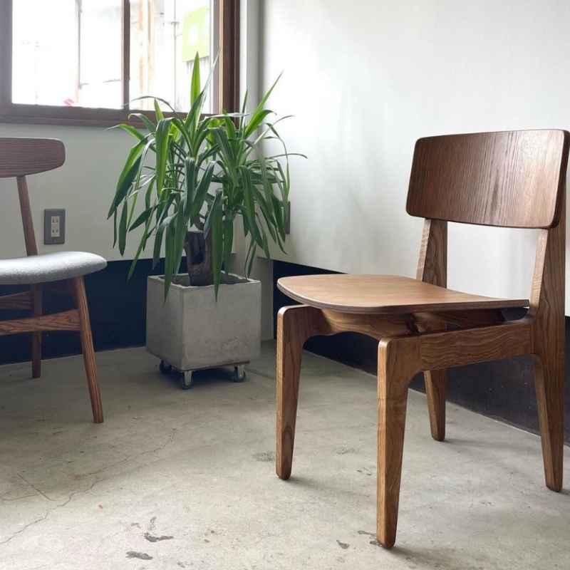 座面には、プライウッドを使用し、緩やかなカーブに加工しています。軽やかでモダンなデザインになっています。