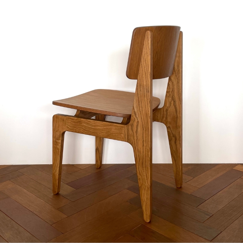 曲線が少ないシンプルな構造ですが、座面が浮いていてとてもかわいいデザインです。背もたれと座面の曲線が身体にフィットします。