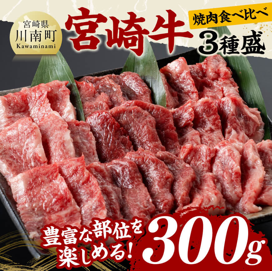 宮崎牛ロース(サーロイン)焼肉100g、宮崎牛バラ(カルビ)焼肉100g、宮崎牛カタ焼肉100g