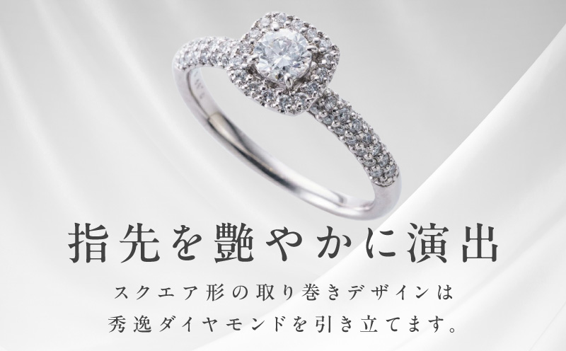 希代のダイヤモンドを使用。スクエア形の取り巻きデザインは秀逸ダイヤモンドを引き立て、指先を艶やかに演出してくれます。