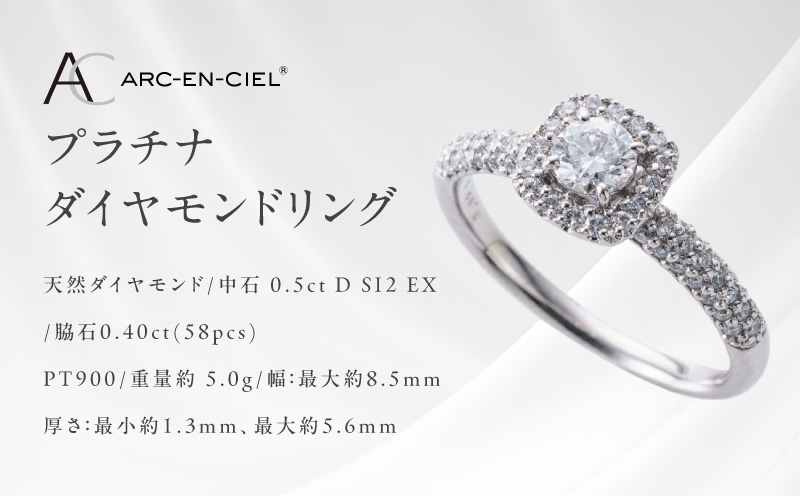 天然ダイヤモンド:中石 0.5ct D SI2 EX/脇石0.40ct(58pcs)