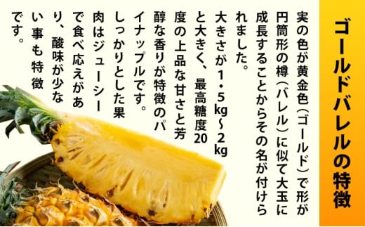 大きさが1.5kg-2kgと大きく、最高糖度20度の上品な甘さと芳醇な香りが特徴のパイナップルです。