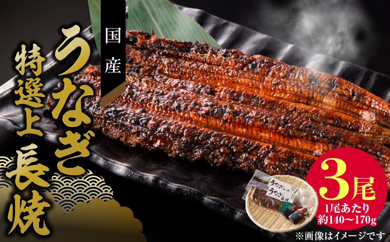 うなぎ【長焼】3尾(約140~170g/尾)、秘伝のタレ20ml・山椒×各3個