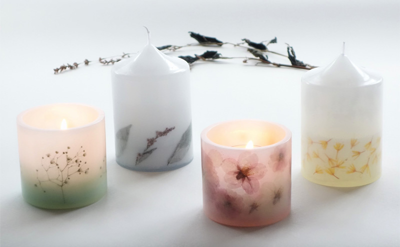 素材:ワックス、顔料、押し花