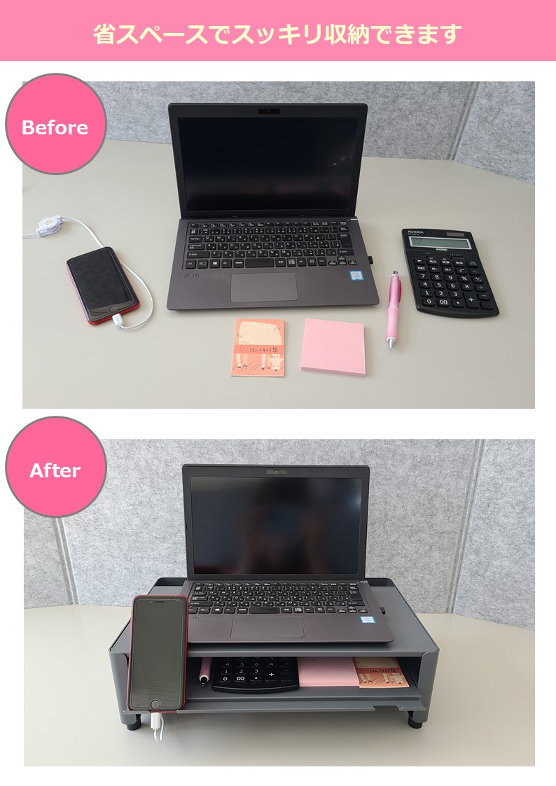 同シリーズの幅600mm机上ラックと併用すると幅広い使い方ができ、あなただけのワークスペースが広がります。