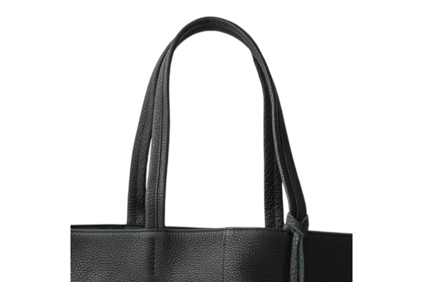 ハンドルは縫い目を外側にすることで、手に持つときも肩にかけるときも、あたりが優しいように工夫しています。