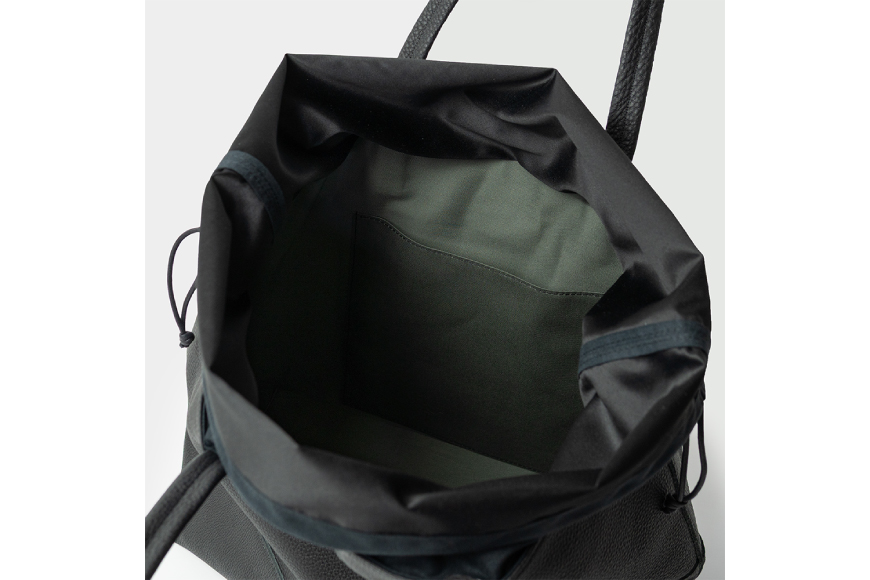 開口部は巾着仕様になっていて、紐をしぼらないときはオープントートとしてお使いいただけます。