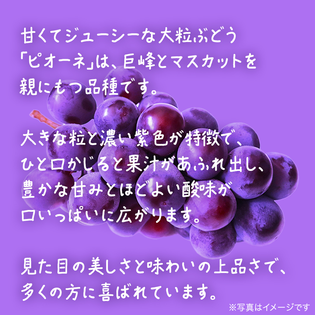 甘くてジューシーな大粒ぶどう「ピオーネ」は、巨峰とマスカットを親にもつ品種です。