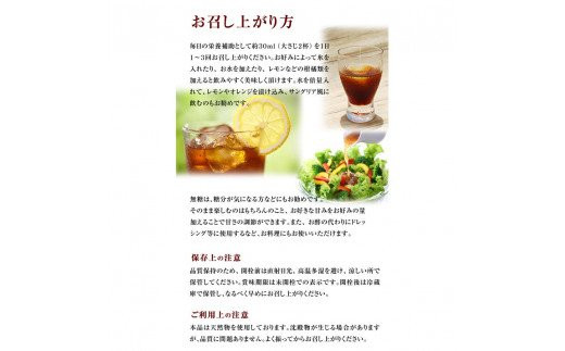 静置発酵法を用いて長期熟成させるため、表面に酢酸膜が形成され蓋の役割を果たし、お酢の中にコクや香り、旨味成分を閉じ込めます。そのため、琥珀色に輝く芳醇なお酢に仕上がります。