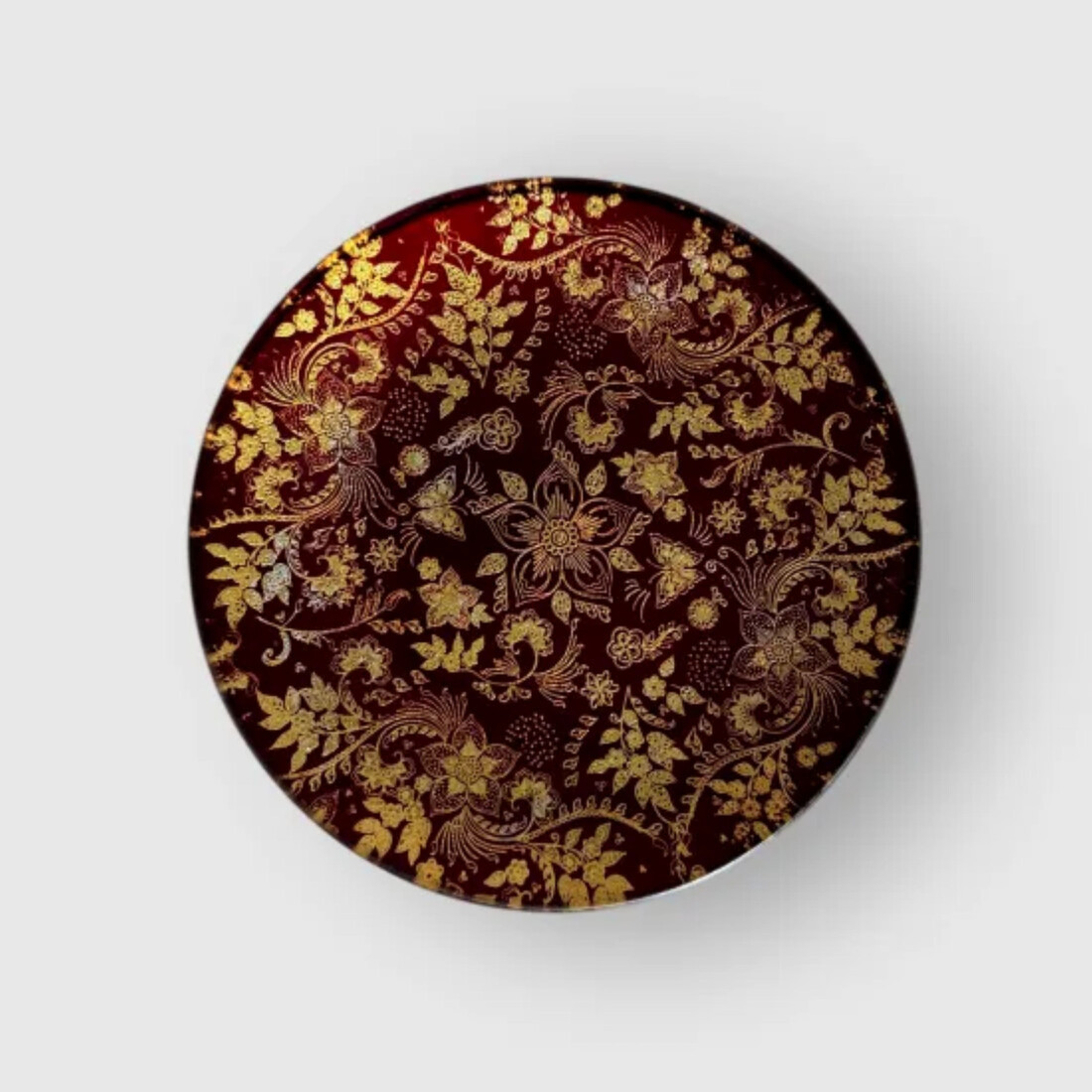 ガラスの裏面から特殊漆を意匠付けし、特殊食器洗浄機対応コートで漆をカバーしている漆器です。