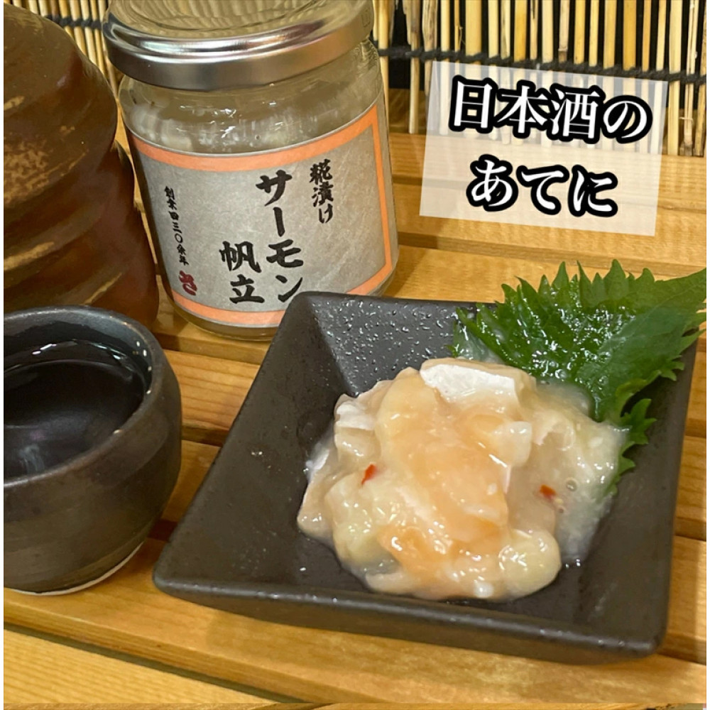 ノルウェー産のサーモンと旨み豊富な国産のホタテ貝柱を塩糀に漬け込みました。