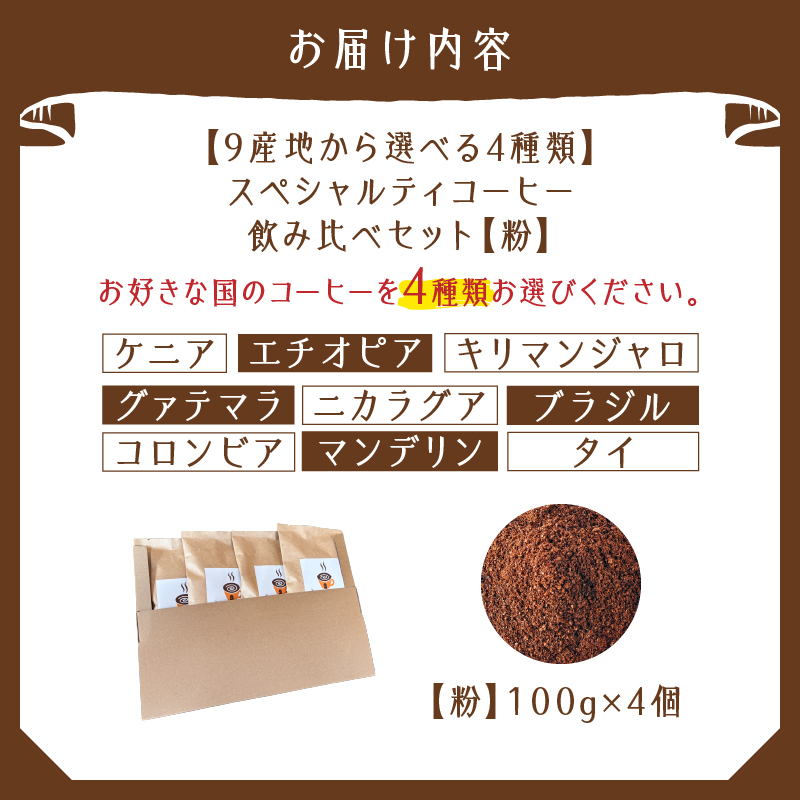 スペシャルティコーヒー(4ヶ国) 100g×4個(粉)