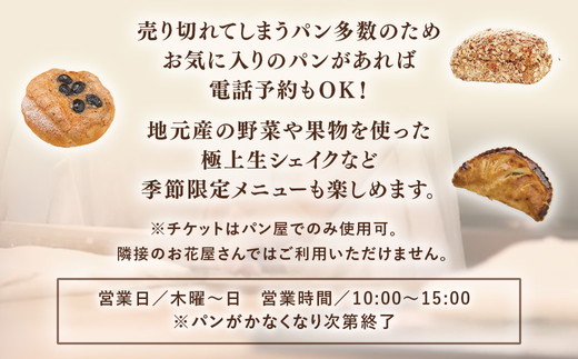 ※チケットはパン屋さんでのみご利用いただけます。隣接するお花屋さんではご利用いただけませんのでご注意下さい。