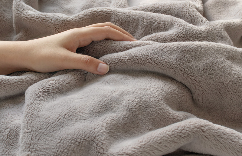 防寒用具や毛布などによく使われる、保温性が高いマイヤー素材を採用。 ふんわりとした肌触りで、しっかりと体を温めてくれます。