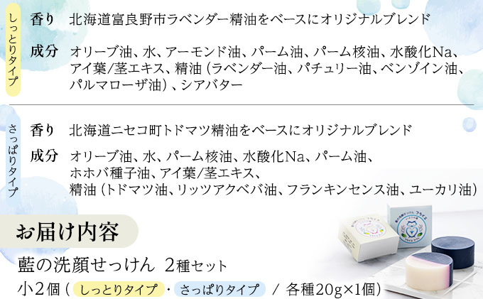 藍せっけん2種セット(さっぱりタイプ・しっとりタイプ)小 各20g1個ずつ