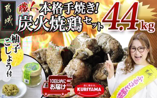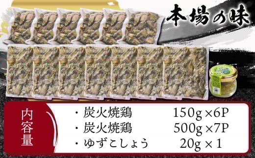 都城市内の加工場において、原料の加工から加熱・成型等の工程を行っている炭火焼鶏と、炭火焼鶏を食べるための薬味をあわせて提供するもの