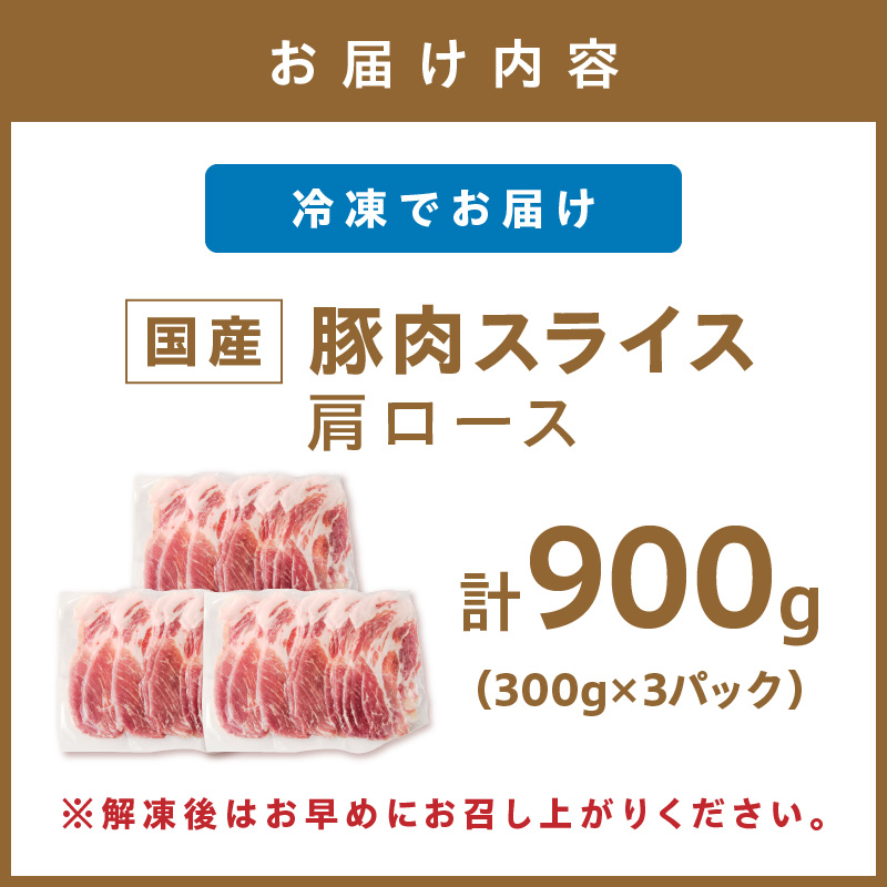 国産豚肉肩ローススライス 1.5mm 300g×3 計900g【034-0041】-[034-0041]