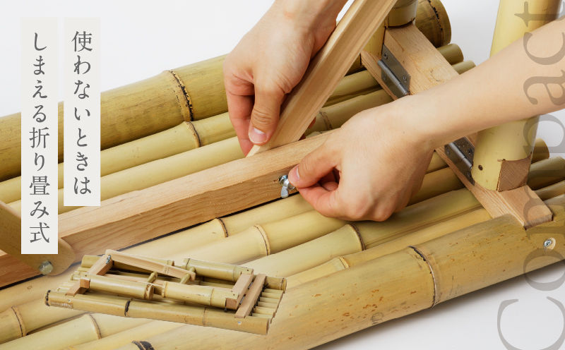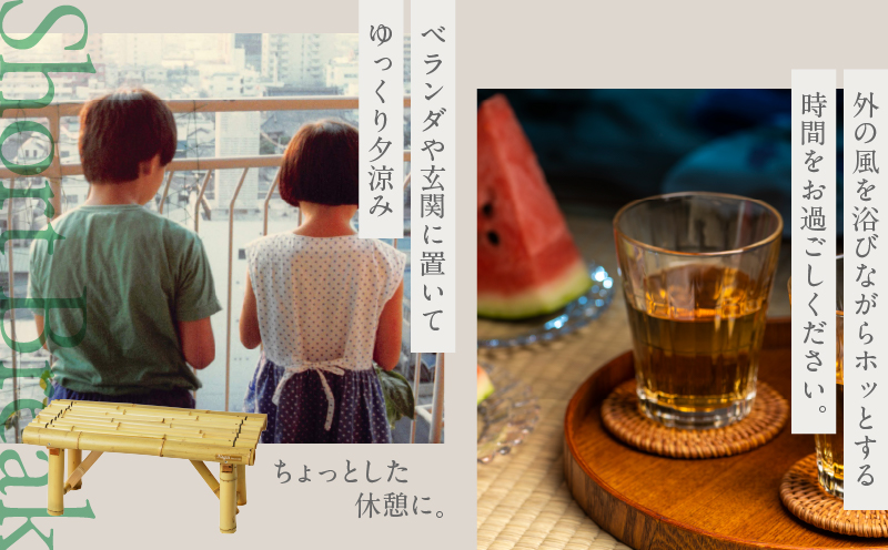 竹独特の涼しげな雰囲気があり、折りたたみ可能で持ち運びにも便利な縁台をご用意いたしました。