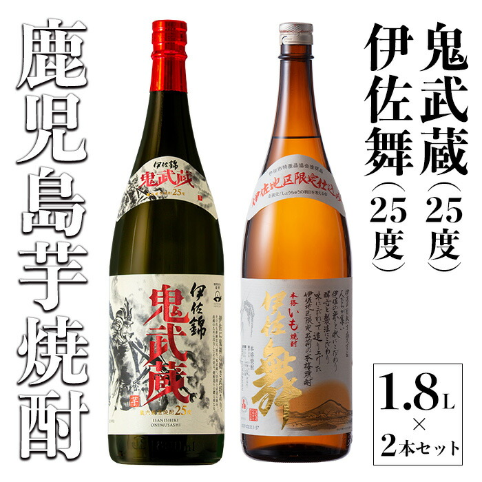 芋焼酎の風味を残しながら軽快でフルーティーな味わいの「伊佐舞」と、力強く豊かな芋の味わいと甘く香り高い「鬼武蔵」のセットです。