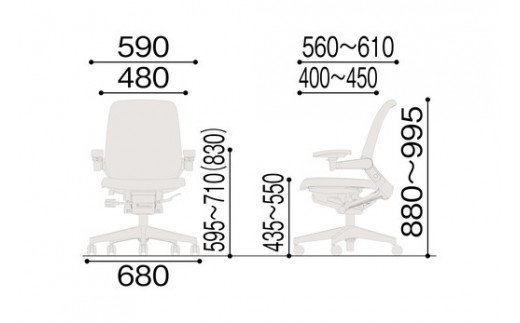 【サイズ】W590(脚:680mm)×D560~610×H880~995mm(SH435~550mm)