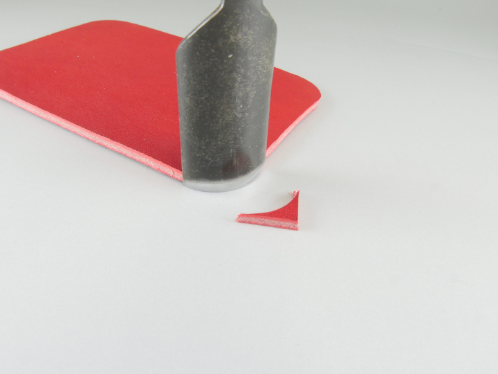 弊社製角丸刀は切れ味がいいためハンマーなどが不要で両手で押し切るようにすればプチッと比較素材の角が抜けます。