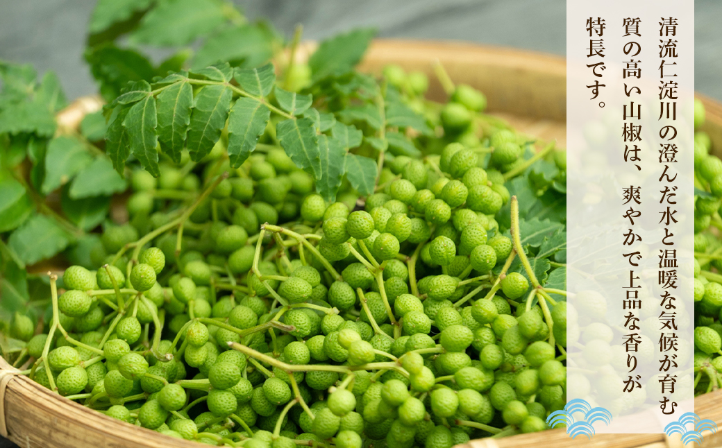 清流仁淀川の澄んだ水と温暖な気候が育む質の高い山椒は、爽やかで上品な香りが特長です。