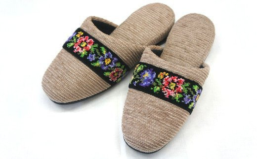 来客にも好評な花模様の上品で豪華なシェニール織りのスリッパです。