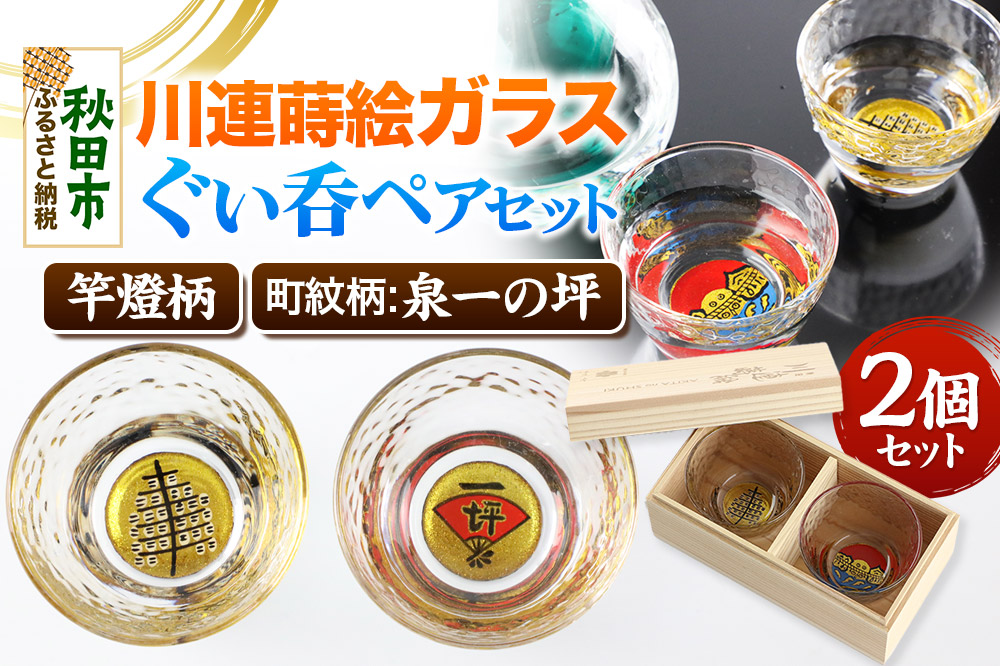 ■名称:川連蒔絵ガラスぐい呑ペアセット【竿燈柄・泉一の坪「軍扇に一の坪」】
