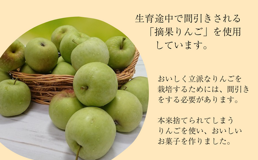この「摘果りんご」をお菓子にすることで、食品ロスの削減と持続可能な地域づくりを目指し、有効活用しています。