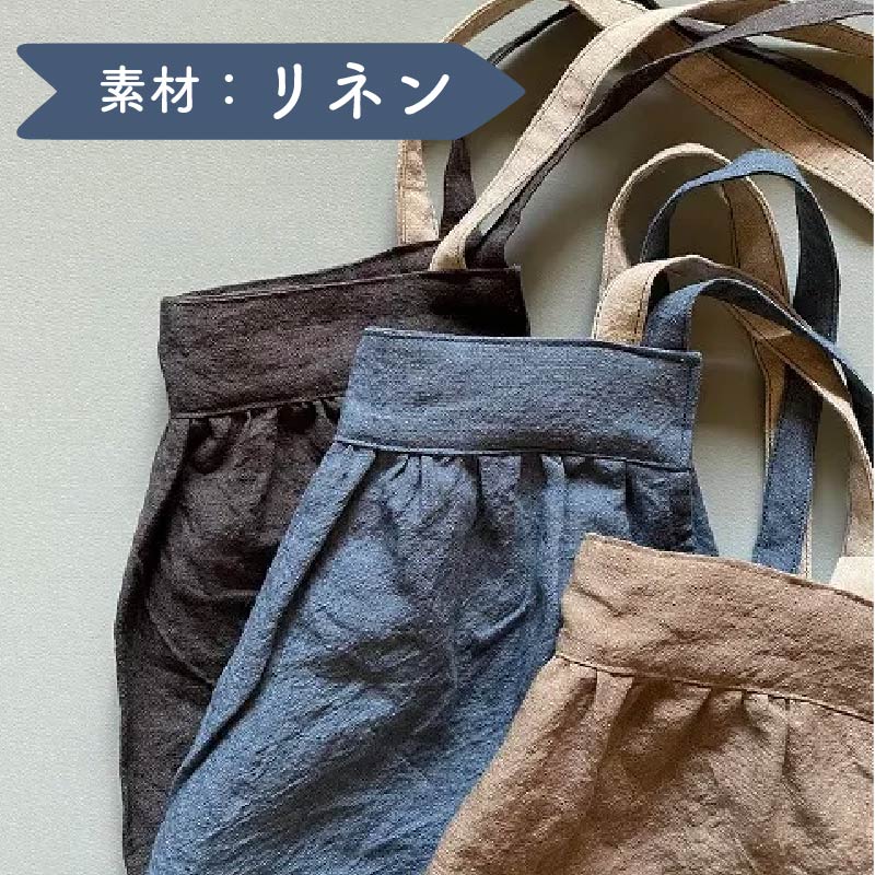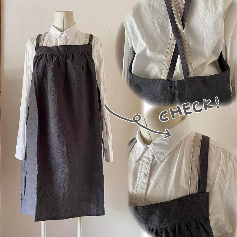 胸元のギャザーが、やわらかく優しい印象のエプロンです。