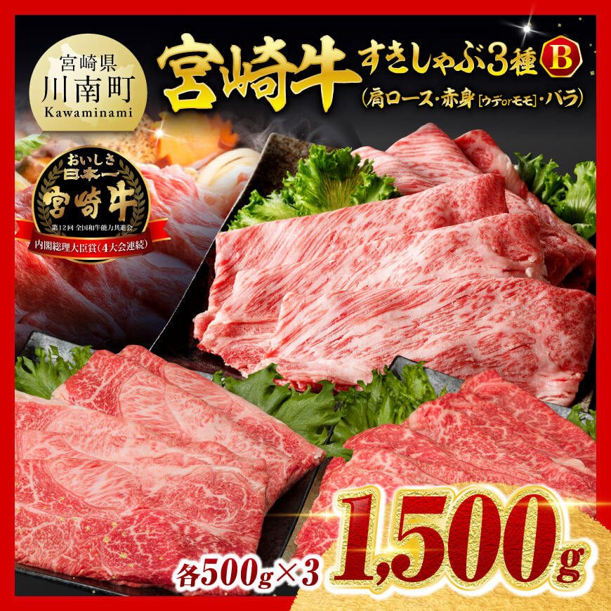 各500gずつの合計1.5gでお届けしますので、ご自宅で宮崎牛をご堪能ください。