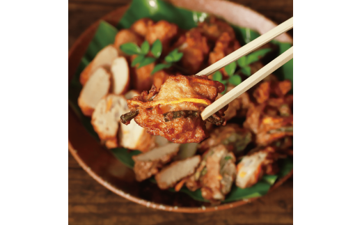 解凍後、油で揚げてあつあつの「さつまあげ」をご賞味ください。少し低めの温度(150~160°)で、じっくりと揚げるのがポイントです。