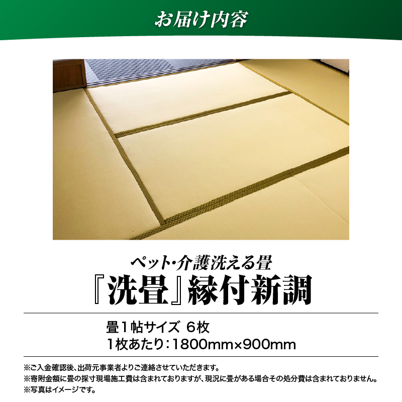 ペット・介護洗える畳『洗畳』畳縁付新調(畳1帖サイズ6枚)