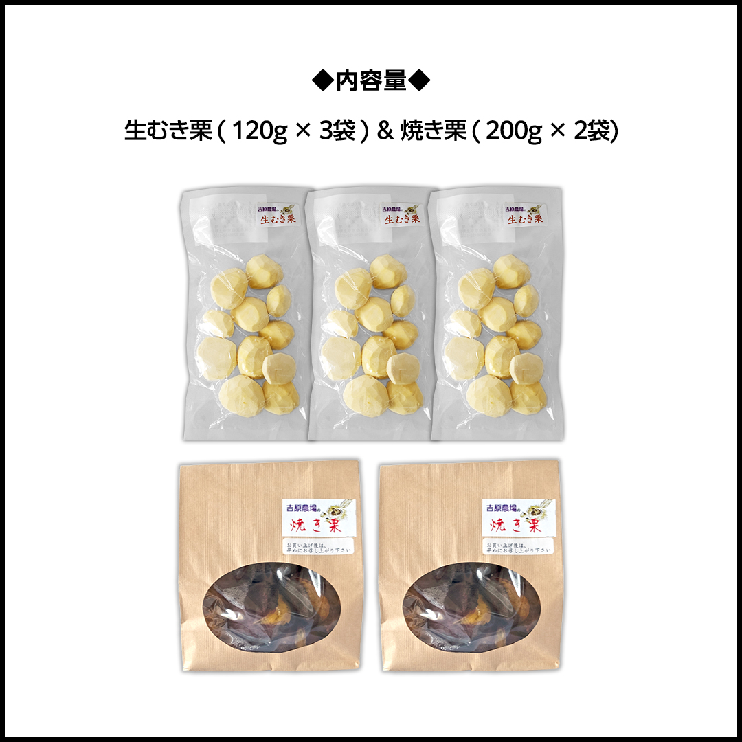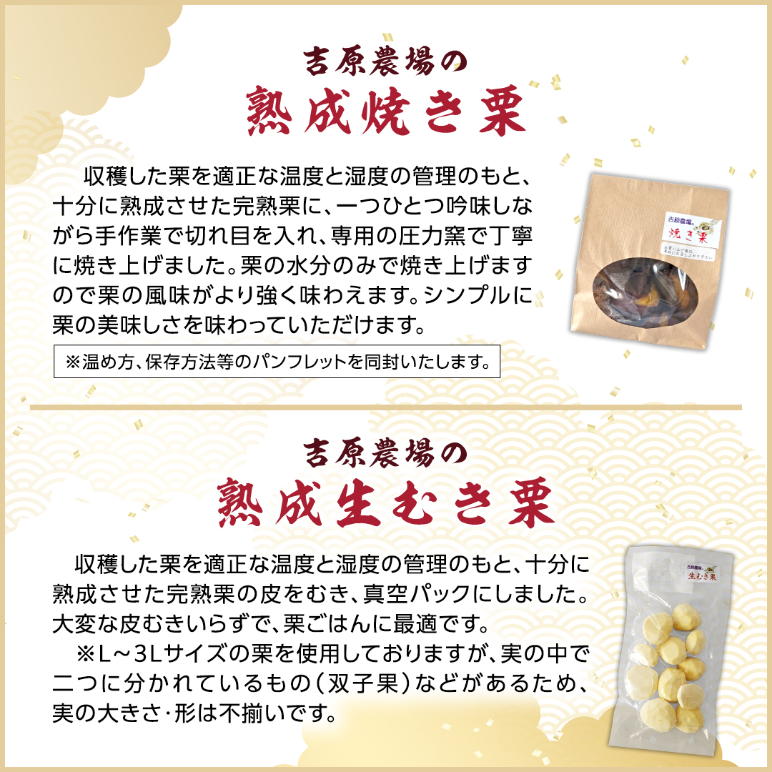![【 吉原農場 の 完熟栗 】 熟成 生むき栗 ( 120g × 3袋 ) & 焼き栗 ( 200g × 2袋 ) セット 完熟 栗 くり クリ 栗ごはん 果物 フルーツ 贈答 ギフト 旬 秋の味覚 秋 冬 正月 おせち 《 2025年10月下旬発送開始 》 [FC006sa]](https://www.furusato.aeon.co.jp/g_img/082317/3097423_1770605919_square_image(2).webp)