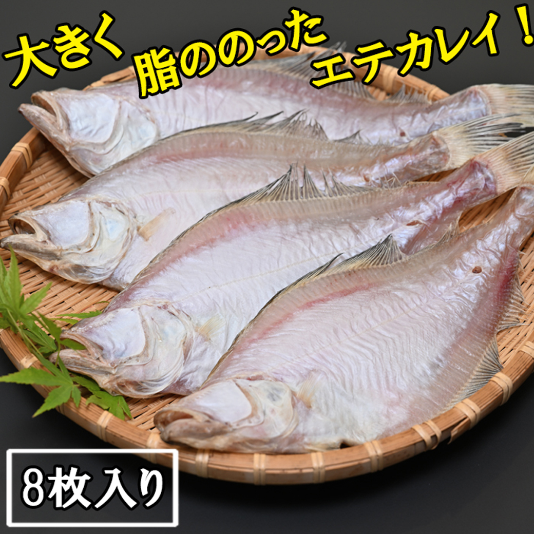1枚ずつ手作業で丁寧に下処理したエテカレイを、保存料を使用せず、天然塩だけで味付けし、一夜干しにしました。