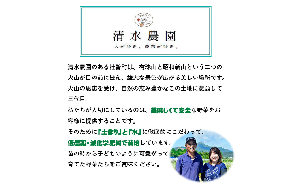 壮瞥町は、世界レベルの大地の公園としてユネスコ世界ジオパークネットワークに登録された、美しい洞爺湖、雄大な有珠山、国の特別天然記念物に指定されている昭和新山、火山の恵みである温泉など、 豊富な天然資源に恵まれています。また、北海道内でも比較的温暖な気候を活かしたりんごやぶどうをはじめとする果樹生産、高級菜豆、米、地熱を利用した野菜の栽培など多種多様な農作物を生産 する「農業と観光のまち」です。