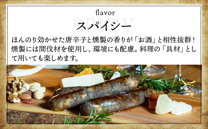 ほんのり効かせた唐辛子と燻製(間伐材使用)の香りが「お酒」に合います。