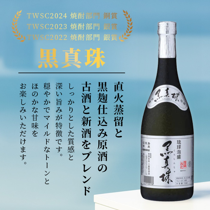 創業から65年以上石垣島で愛され、試行錯誤を繰り返し育まれてきた香ばしい香り、切れのあるバランス良い味わい、奥行きのある甘みが特徴の八重泉の原点ともいえる「八重泉」と、石垣島に古くより伝わる直火式蒸留と黒麹仕込み、新酒と古酒をブレンドしたしっかりした質感、深い旨味の黒真珠をお楽しみください。