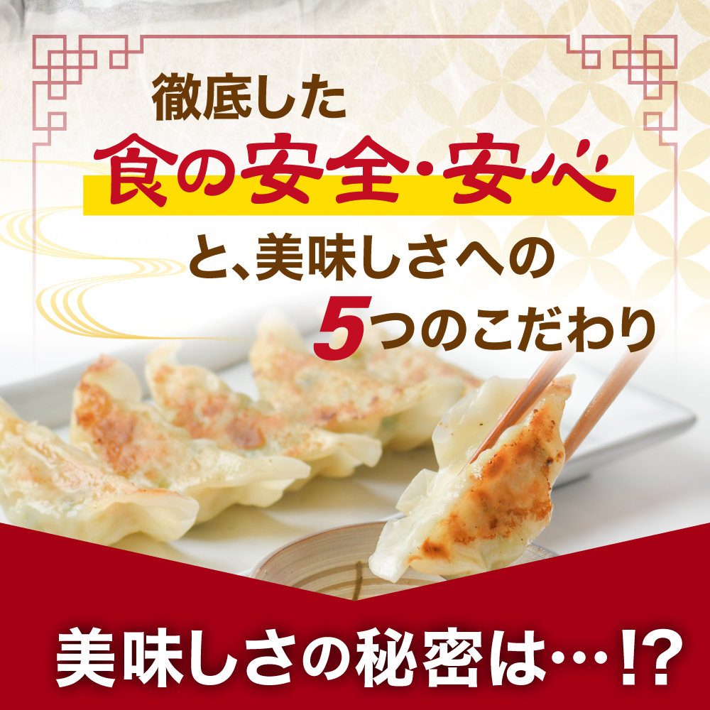 すべての原材料を国内産から厳選した、素材に徹底的にこだわった本格生餃子です。