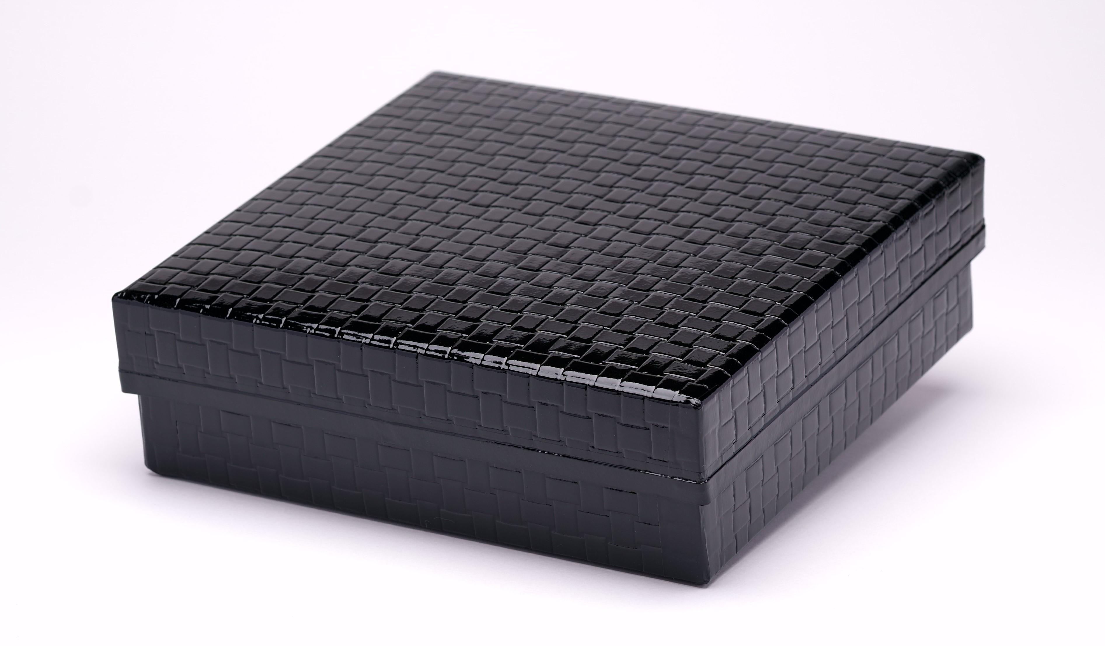 網代(あじろ)模様で仕上げた紀州塗箱は、丈夫なので末長く趣を楽しんでいただけます。梅干を取り出した後、黒く艶めく網代模様の個性的なデザインがお部屋のインテリアの一つとして映え、裁縫道具入れや文箱など小物入れとしてご利用いただけます。外箱だけでなく内箱(木箱)の蓋にも紀州塗りが施されています。