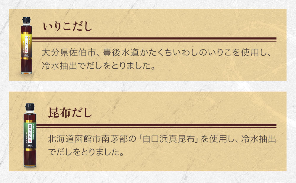 大分県佐伯市、豊後水道かたくちいわしのいりこを使用し、冷水抽出でだしをとりました。