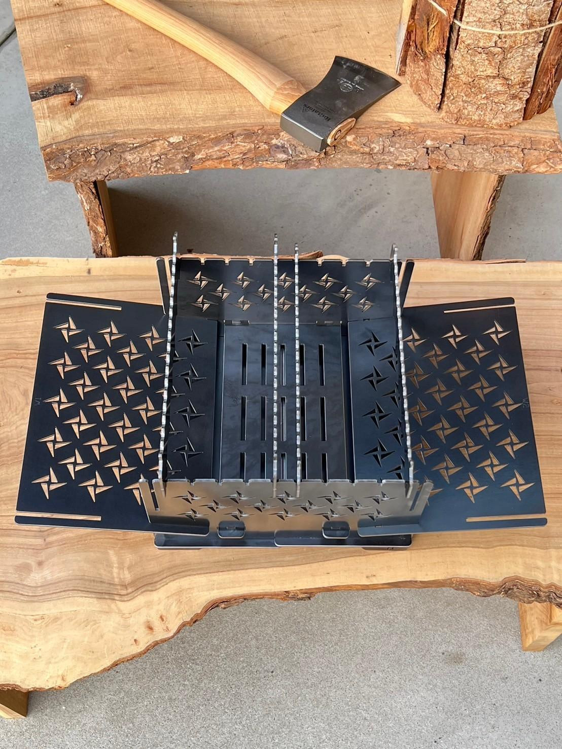 瀬戸内マリアージュオリジナルで製作しました3WAY焚火BOXシュリケン柄。