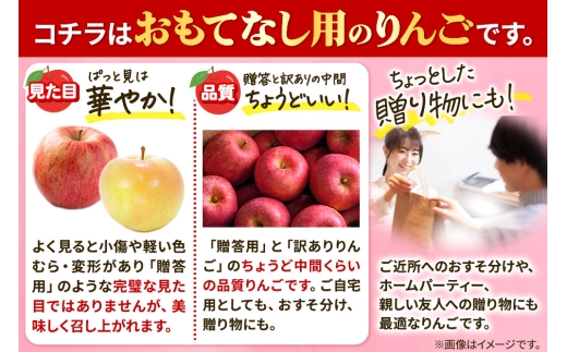 ●ちょうどいい品質:「贈答用」と「訳ありりんご」のちょうど中間くらいの品質のりんごです。